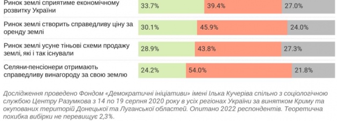 С другой - 44% респондентов допускают куплю-продажу, однако среди них нет единодушия относительно условий оборота земли".