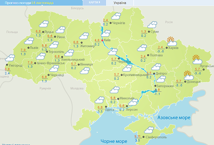 Детали: В субботу 14 ноября в Украине без существенных осадков. Ветер юго-восточный, 3-8 м/с.