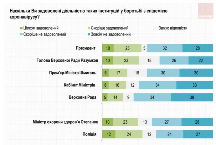 Работой президента Владимира Зеленского в борьбе с пандемией коронавируса в Украине недовольны 60% украинцев, 35% - довольны.