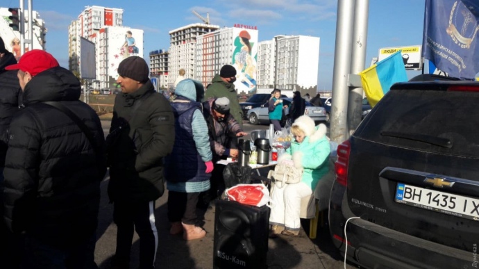 В течение дня люди периодически перекрывали движение по Овидиопольской трассе, из-за чего возникали заторы и перепалки с водителями.
