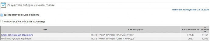 По результатам второго тура местных выборов мэром Никополя избрали представителя политической партии "За будущее" Александра Саюка.