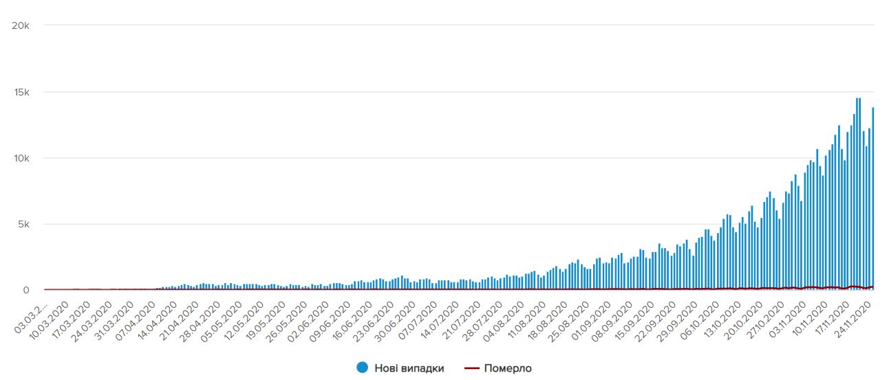 За сутки 24 ноября положительный результат ПЦР-теста на COVID-19 получили 13 882 украинца, в больницы попали 1 818 пациентов, умерли 229 больных, выздоровели 8 420 человек.