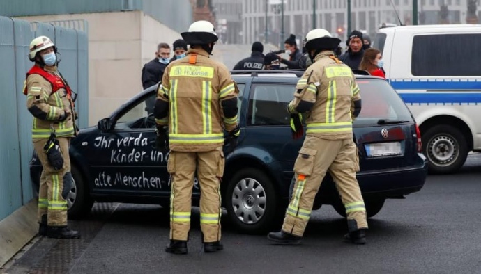 Вскоре после этого на месте видели машину "скорой помощи", зачем она приезжала - неизвестно. Берлинская полиция сообщила в Twitter, что водитель был взят под стражу.