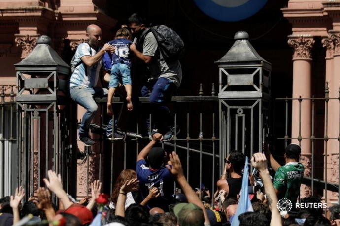 Детали: Известно, что люди, которые стояли в очереди, чтобы попасть в президентский дворец Casa Rosada, где разместили гроб с футболистом, пытались попасть туда после его закрытия.