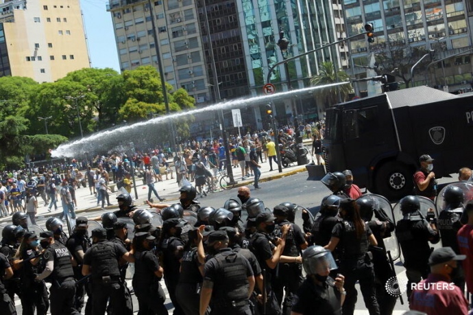 Во время прощания с аргентинским футболистом Диего Марадоной перед президентским дворцом произошли столкновения между полицией и болельщиками, которые пришли почтить память футболиста.