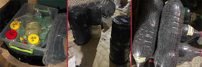 А также упаковки с сыпучими веществами, похожими на метательное взрывчатое вещество, около 130 бутылок, наполненных металлической дробью и металлическими шариками, 12 пулелеек, 9 станков и другие вещественные доказательства.