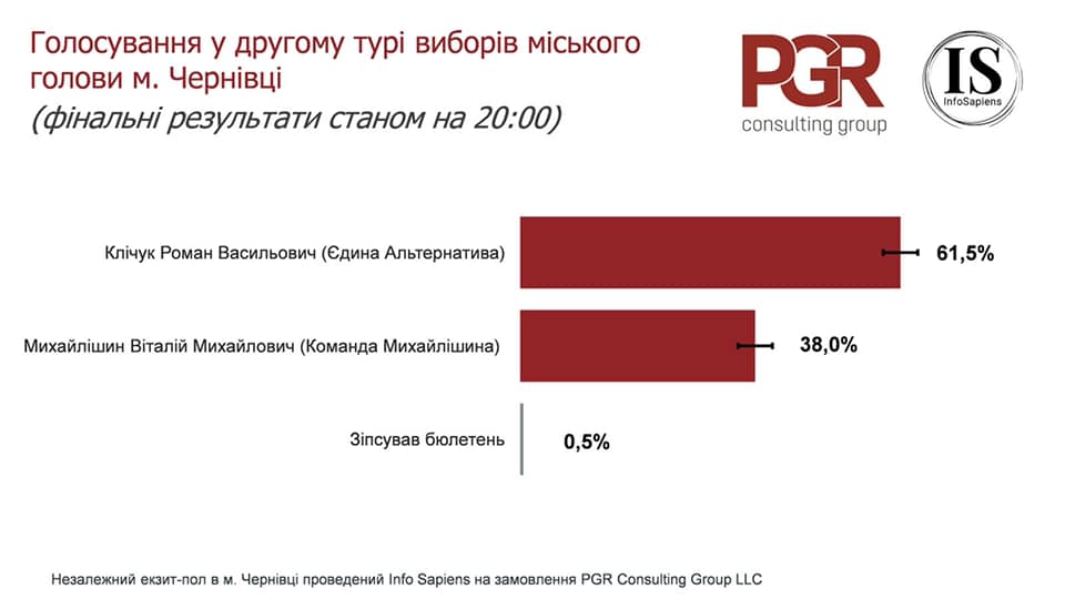 По итогам голосования на выборах городского головы 25 октября, они получили наибольшее количество голосов избирателей: Кличук – 27,29%, Михайлишин – 21,33%. Нынешний мэр Черновцов Алексей Каспрук тогда получил 18,15% голосов.