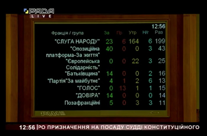 Верховная Рада не смогла заполнить одну из трех свободных вакансий в Конституционном суде, на назначение судьи не хватило голосов.