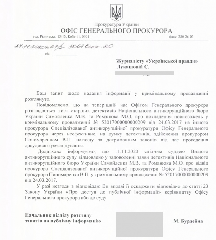 27 ноября в ОГП сказали, что письмо детективов до сих пор находится на рассмотрении.