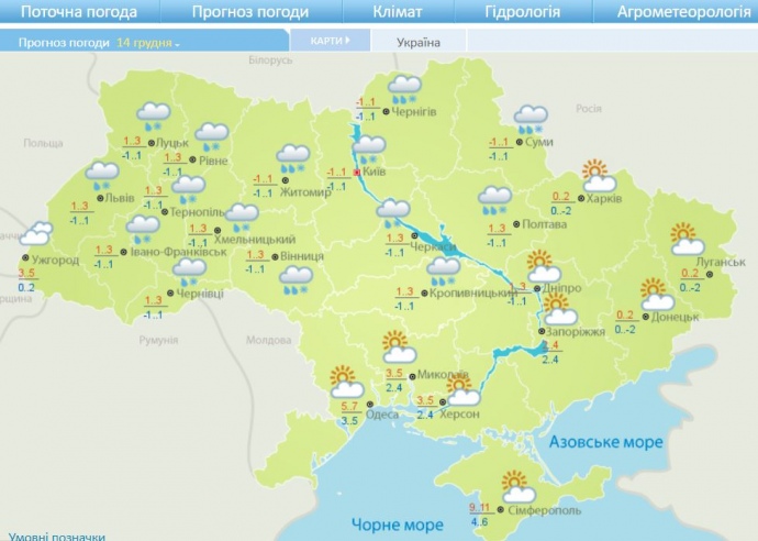 Прямая речь: "14-го декабря очередной циклон подбросит в Украине осадков.