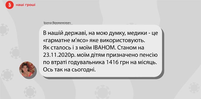 Среди семей умерших медработников, не получили выплаты - семья врача Ивана Венжиновича, фотографию с которым использовали по всей Украине для социальной рекламы с надписью "Дякую".