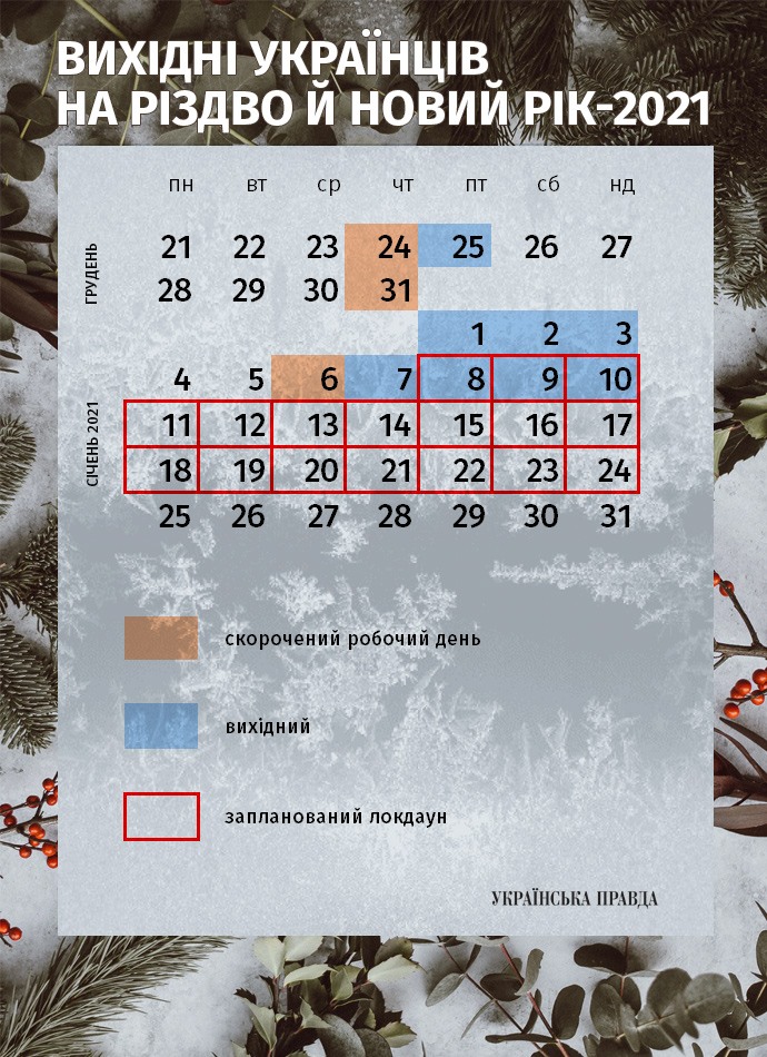 На Рождество и Новый год у украинцев будет три длинных уикенда