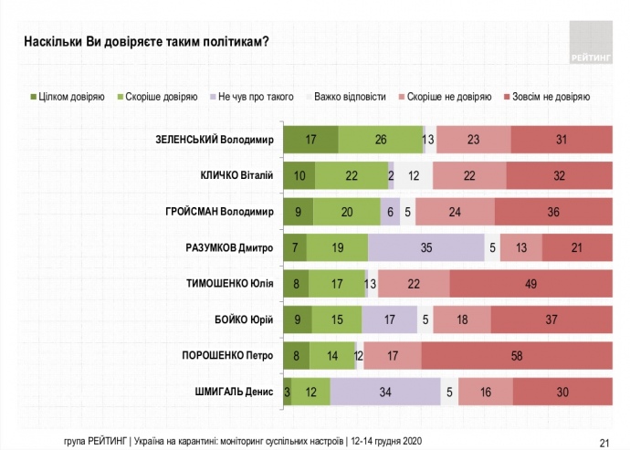 Дмитрию Разумкова доверяют 26% (не доверяют 34%, 35% не знают, кто это),