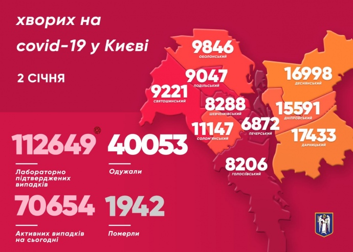 С начала эпидемии в Киеве уже 112 649 подтвержденных случаев коронавируса, 1942 летальных случая, преодолели болезнь 40 053 жителя столицы.
