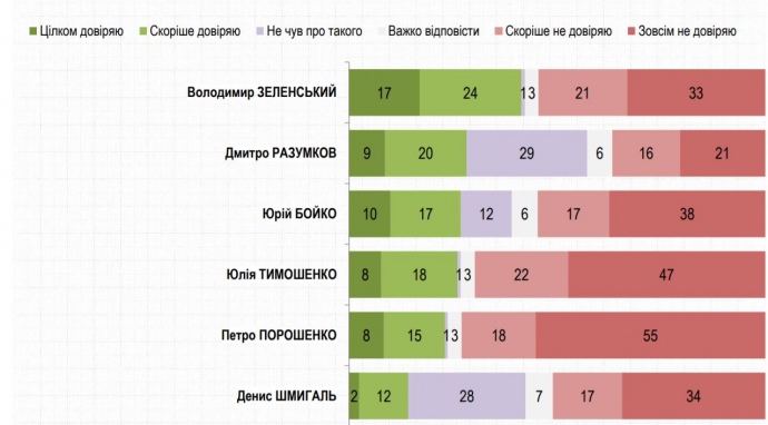 Зеленский возглавляет рейтинг доверия, а Порошенко – недоверия – Рейтинг