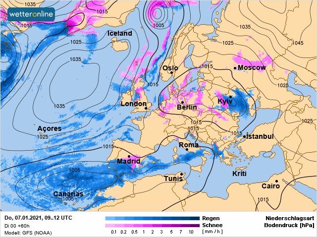 7 января, на Рождество, небольшое похолодание предполагается в западной части Украины. "Циклон, который уже сейчас разминается на юго-западе Европы, 7 января охватит практически всю Украину дождем и мокрым снегом, а еще и сильным северо-западным ветром", - пишет Диденко.