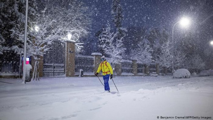 В Мадриде не было такого снегопада с 1971 года. Мэр города опубликовал в соцсети Twitter видеообращение с призывом к горожанам оставаться дома. Однако его призыв остался не услышанным - жители Мадрида все равно гуляли по городу - дети лепили снеговиков, а взрослые передвигались на лыжах.