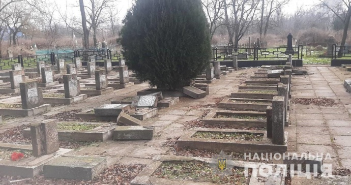 Полицейские обнаружили 17 разбитых и поваленных на землю каменных плит братской могилы воинам-освободителям Второй мировой войны на мемориальном кладбище в Херсоне.