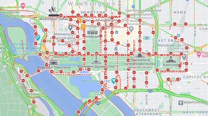 Центральная часть Вашингтона уже заблокирована, на улицах практически пусто. В столицу США стянуты тысячи солдат Национальной гвардии. Многие улицы - за несколько километров от Капитолия, места беспорядков 6 января - перекрыты бетонными блоками и металлическими ограждениями.