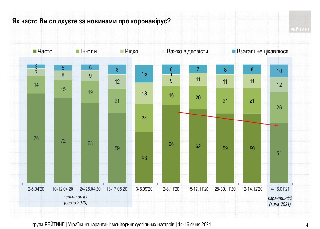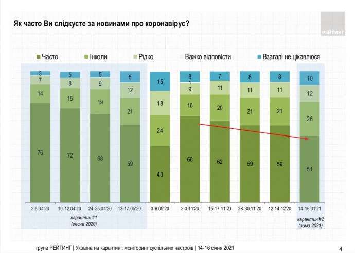 Украинцы стали меньше волноваться, что они или их близкие заболеют COVID-19, а также стали меньше следить за новостями о коронавирусе.
