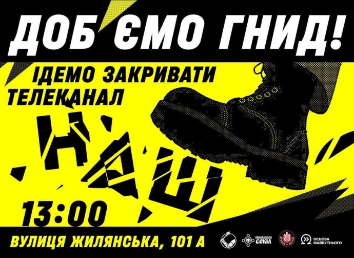 Дословно "ПС": "Призываем всех патриотов остановить агрессию России в информационном пространстве и заставить замолчать враждебную пропаганду навсегда. Все под мураевський телеканал "Наш"! Закроем вместе рупор ордынского Кремля".