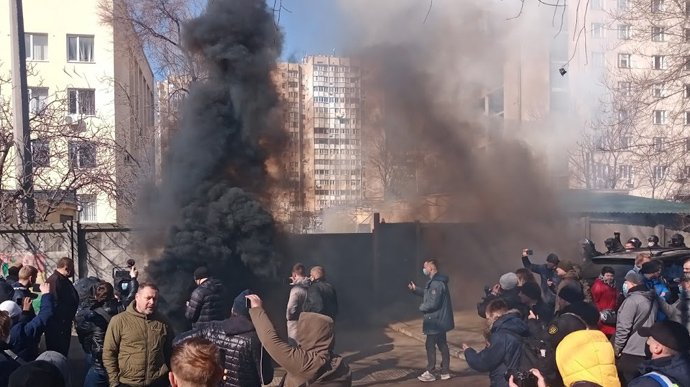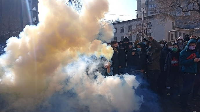 С первых минут там начались стычки, люди бросали педарды, фаеры, ругались с полицией. Тот выезд люди заблокировали машинами.