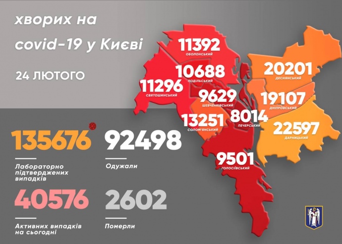 За время пандемии в столице обнаружили 135 676 больных коронавирусом. Умерли 2 602 киевлян, а выздоровели - 92 498.