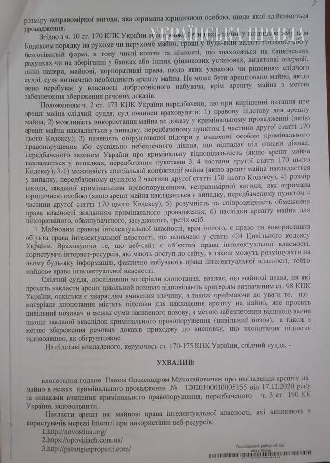 Затем Пан и его адвокаты обратились в Голосеевский районный суд с требованием наложить арест на сотни интернет-сайтов, которые в разное время что-то о нем писали.