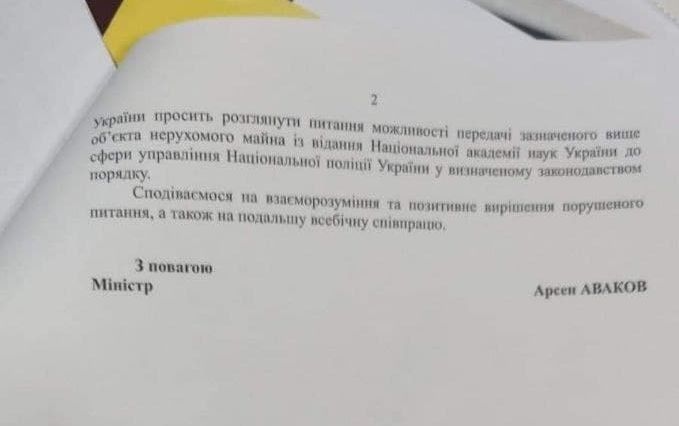 Источник: письмо главы МВД Арсена Авакова к президенту НАНУ Анатолию Завгороднему, которое есть в распоряжении "Украинской правды"