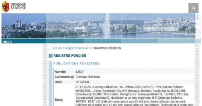 Детали: По данным Лещенко, старший сын Ахметова Дамир 7 декабря 2020 года приобрел недвижимость на берегу Женевского озера, в деревне Везена (Vésenaz), за 60 миллионов швейцарских франков.