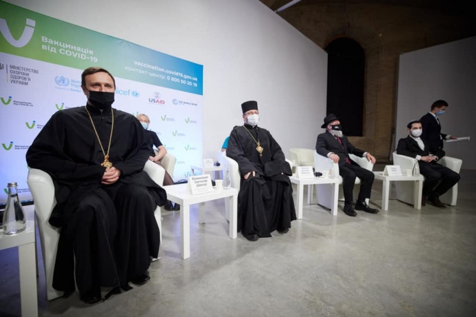 Во вторник нескольких украинских религиозных лидеров привили от COVID-19 остаточными дозами вакцины AstraZeneca (Covishield).