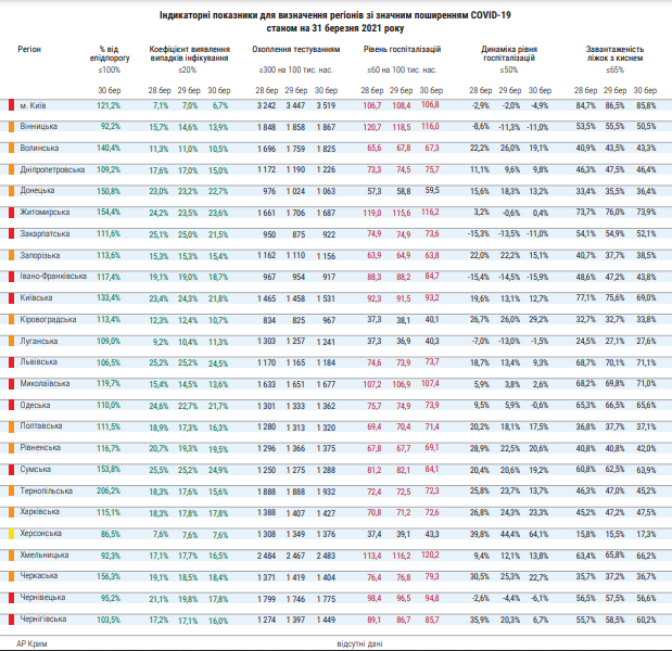 Детали: Так, 28 марта показатель госпитализаций в Хмельницкой области на 100 тысяч населения составлял 113,4, на следующий день он вырос до 116,2. За минувшие же сутки этот индикатор держался на уровне 120,2.