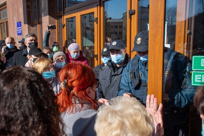 В Ивано-Франковске городской голова Руслан Марцинкив вместе с горожанами протестовал против карантинных ограничений "красной" зоны.