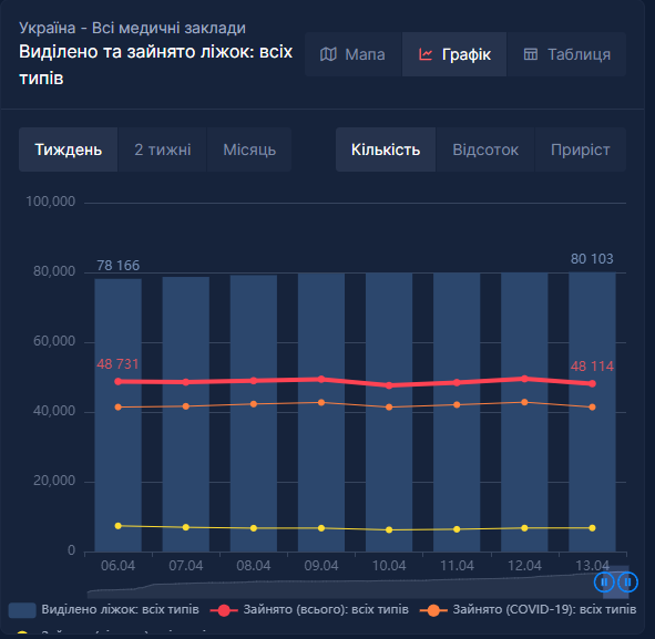 - За минувшие сутки 13 апреля в Украине зафиксировали 14 553 новых случая коронавирусной болезни COVID-19, 467 - умерших и более 5 тысяч госпитализированных.