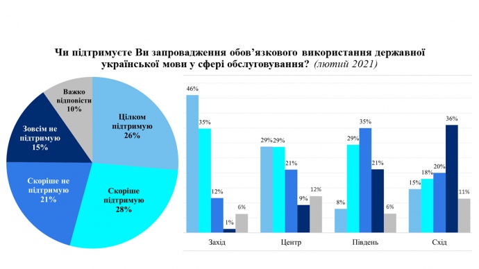 54% граждан Украины поддерживает введение обязательного использования государственного языка в сфере обслуживания.