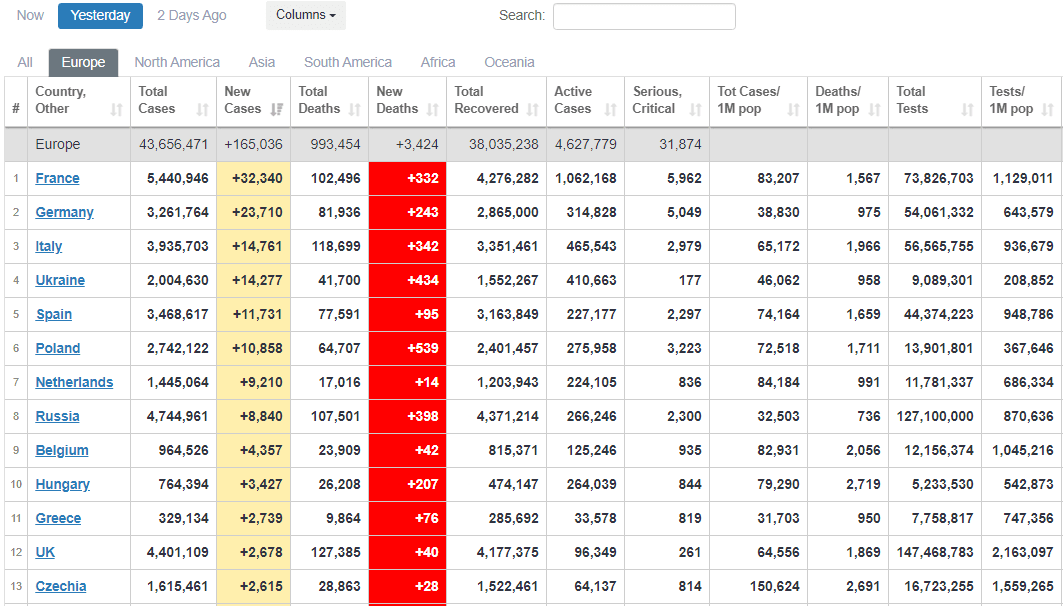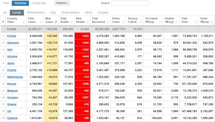 Умерли за сутки 14 218 человек. По ежедневной смертности Украина 7-я в мире и вторая в Европе.