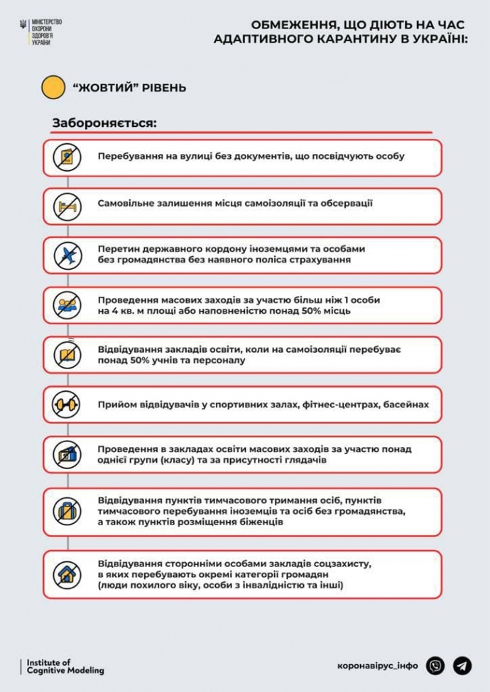 Также применить на территории Киевской и Николаевской областей ограничительные противоэпидемические меры, предусмотренные для "желтого" уровня эпидемической опасности".