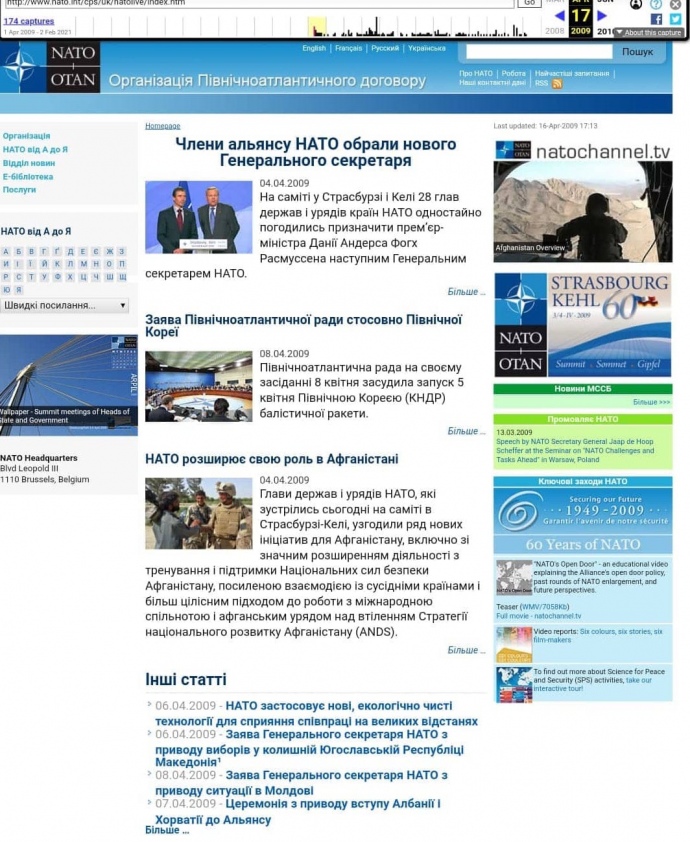 Со вчерашнего дня в украинском сегменте Facebook и Twitter появилось большое количество сообщений о том, что сайт НАТО теперь можно читать на украинском языке.