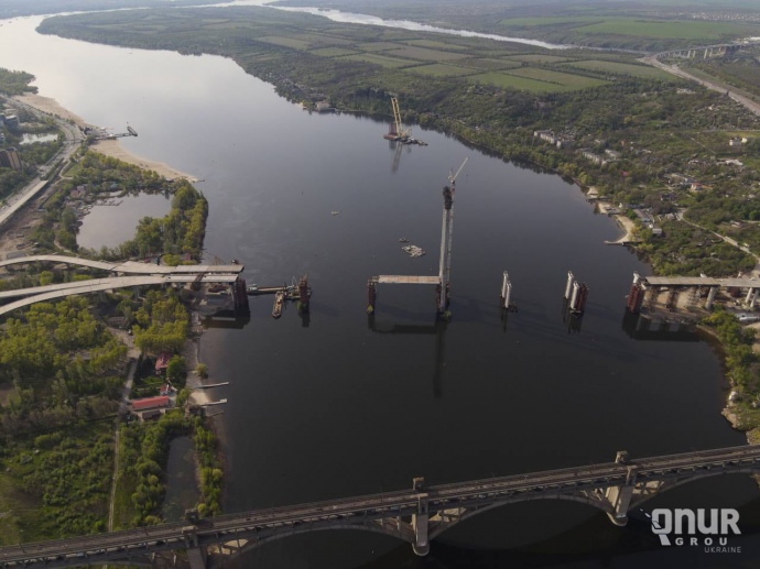 Кран-гигант Zakhariy снова влип в историю: строительство моста в Запорожье приостановлено