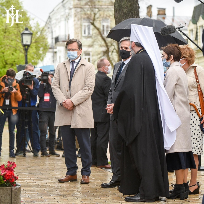 Детали: Встреча состоялась 6 мая. В ее начале Епифаний и Блинкен приняли участие в церемонии почтения памяти погибших украинских героев, возложив цветы к Стене памяти. Далее глава американской дипломатии посетил кафедральный Свято-Михайловский собор.