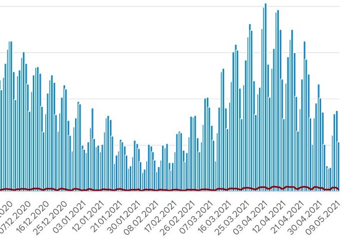 В течение субботы, 8 мая, в Украине обнаружили 5,3 тысячи новых заражений Covid, 193 больных умерли, 2,6 тысячи человек госпитализированы.