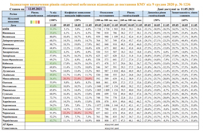 Николаевская и Черкасская области остаются в "оранжевой" зоне, поскольку в течение последних трех дней там превышен коэффициент выявления случаев инфицирования коронавирусом.