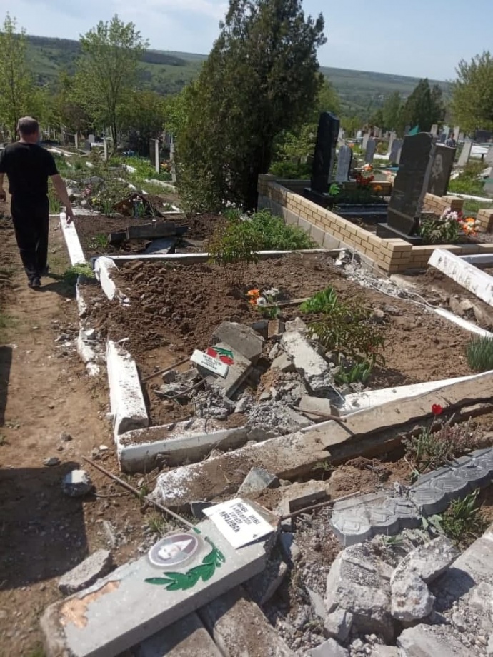 Предыстория: Надругательство над могилами на этом кладбище впервые произошло год назад. Тогда пострадало меньше могил, жители обращались к представителям оккупационной власти с жалобами, но их просто проигнорировали.