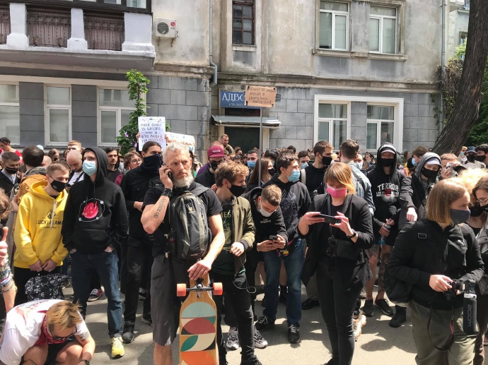Детали: На акцию собралось ориентировочно 500 человек. Напротив отделения установили импровизированную сцену и громко включили электронную музыку.