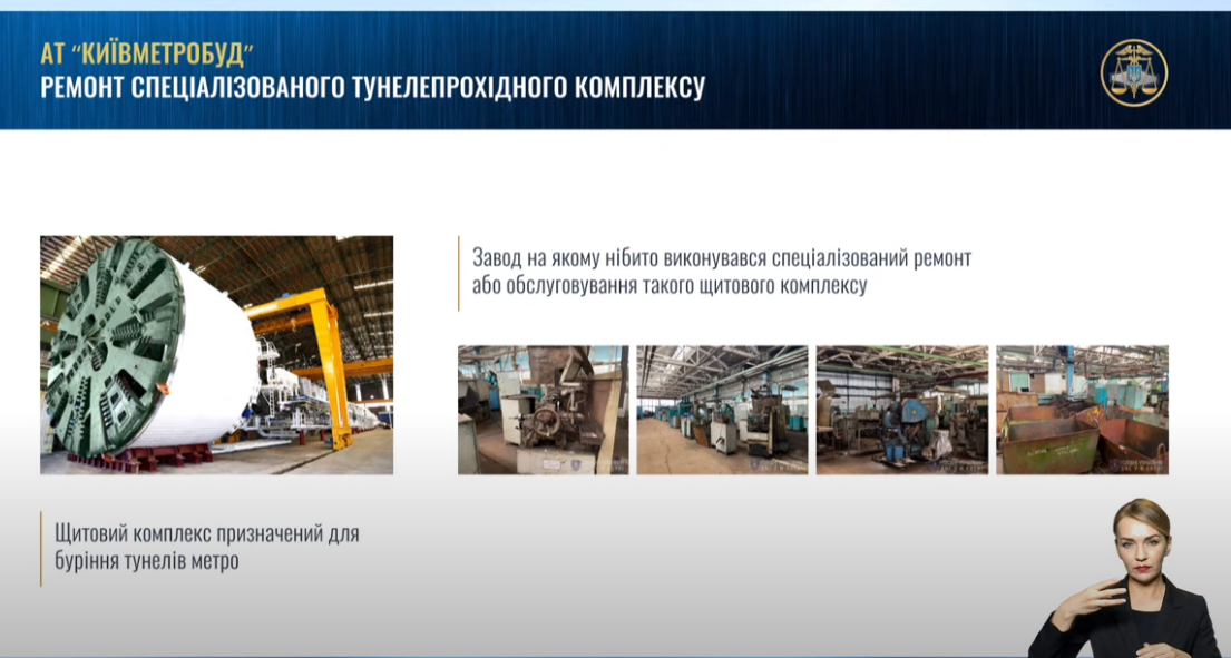 Прямая речь Мельника: "Это комплекс, который строит туннели для метрополитена. В другой части слайда вы видите предприятие, на котором за 80 млн гривен этот комплекс был отремонтирован. Нами собраны доказательства, что этот комплекс не ремонтировали. Проводился ли вообще ремонт этого оборудования - мы будем в ходе досудебного расследования узнавать. Но денежные средства 80 млн поступили на счета предприятия, в котором собраны доказательства, что оно ремонта такой техники не оказывало.