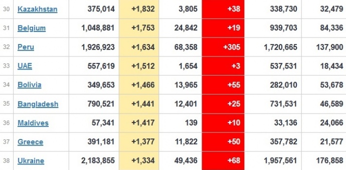 В мировом рейтинге Украина опустилась на 38 место по распространению COVID