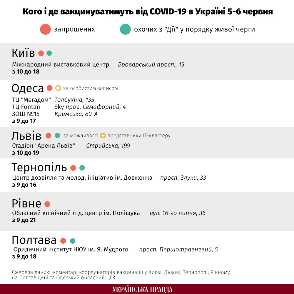 - 29 мая в Центре вакцинации от COVID-19 в Международном выставочном центре в Киеве начали вакцинацию людей, которые записались на прививку через "Дію". При этом вакцинация происходила не только по предварительному согласованию, но и в формате живой очереди для всех, кто изъявил такое желание и имел соответствующую запись в прилодении "Дія".