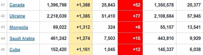 COVID: Украина 42-я в мире по распространению и 5-я в Европе по суточной смертности