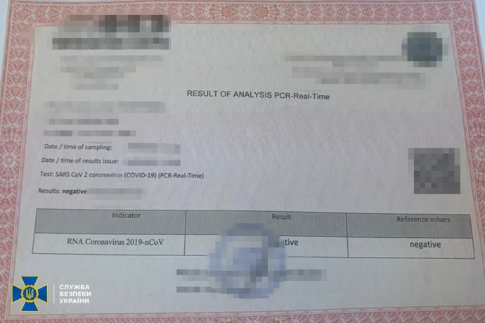 Служба безопасности Украины разоблачила в Черкассах схему фальсификаций результатов ПЦР-тестов: ежемесячно дельцы изготавливали до 100 поддельных справок, в том числе иностранного образца для выезда за границу.