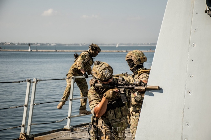 Детали: С украинской стороны участие в учениях принял 73 морской центр СпН им. кошевого атамана Антина Головатого.